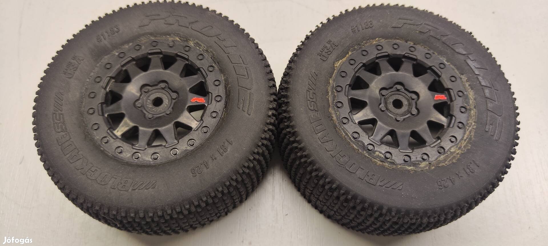 Eladó a képeken látható újszerű állapotú Pro-Line Blockade 1/10 SCT RC autó kerék pár Pro-Line felnivel, sajnos az egyik hatszög megforgott de adok hozzá egy jó állapotú felnit csak át kell rakni a gumit.
