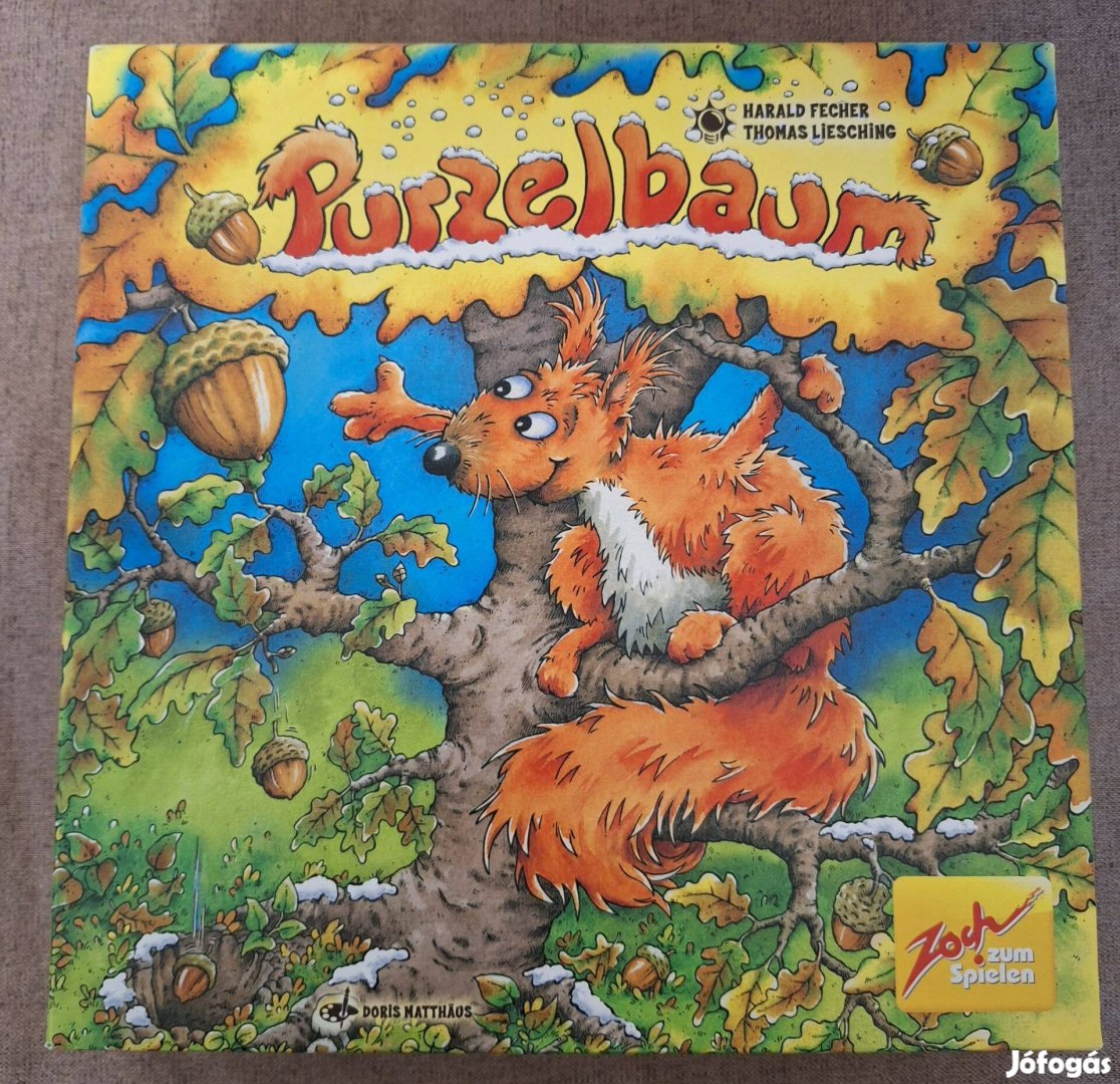 Hiánytalan,jó állapotú,nyomtatott magyar nyelvű játékszabállyal. 4 éves kortól, 2-4 játékos részére.Nyáron érnek meg,ősszel pedig a makk és a dió lehullik a fákról. Az okos mókusok különösen szeretik elrejteni ezeket a titkos rejtekhelyeiken,hogy télen is legyen mit rágcsálniuk.Tavasszal,amikor elolvad a hó,a mókusok már alig várják,hogy újra friss diót ehessenek.Most ti is tegyetek úgy,mint a mókusok: keressetek megfelelő rejtekhelyeket.Hagyjátok,hogy a diófélék beleessenek,és jutalmazzátok meg magatokat a sikeres munkáért egy lédús levéllel. Télen,amikor minden fehér, természetesen pont azokat a rejtekhelyeket fogjátok megtalálni,ahol különösen sok dió található...ugye?