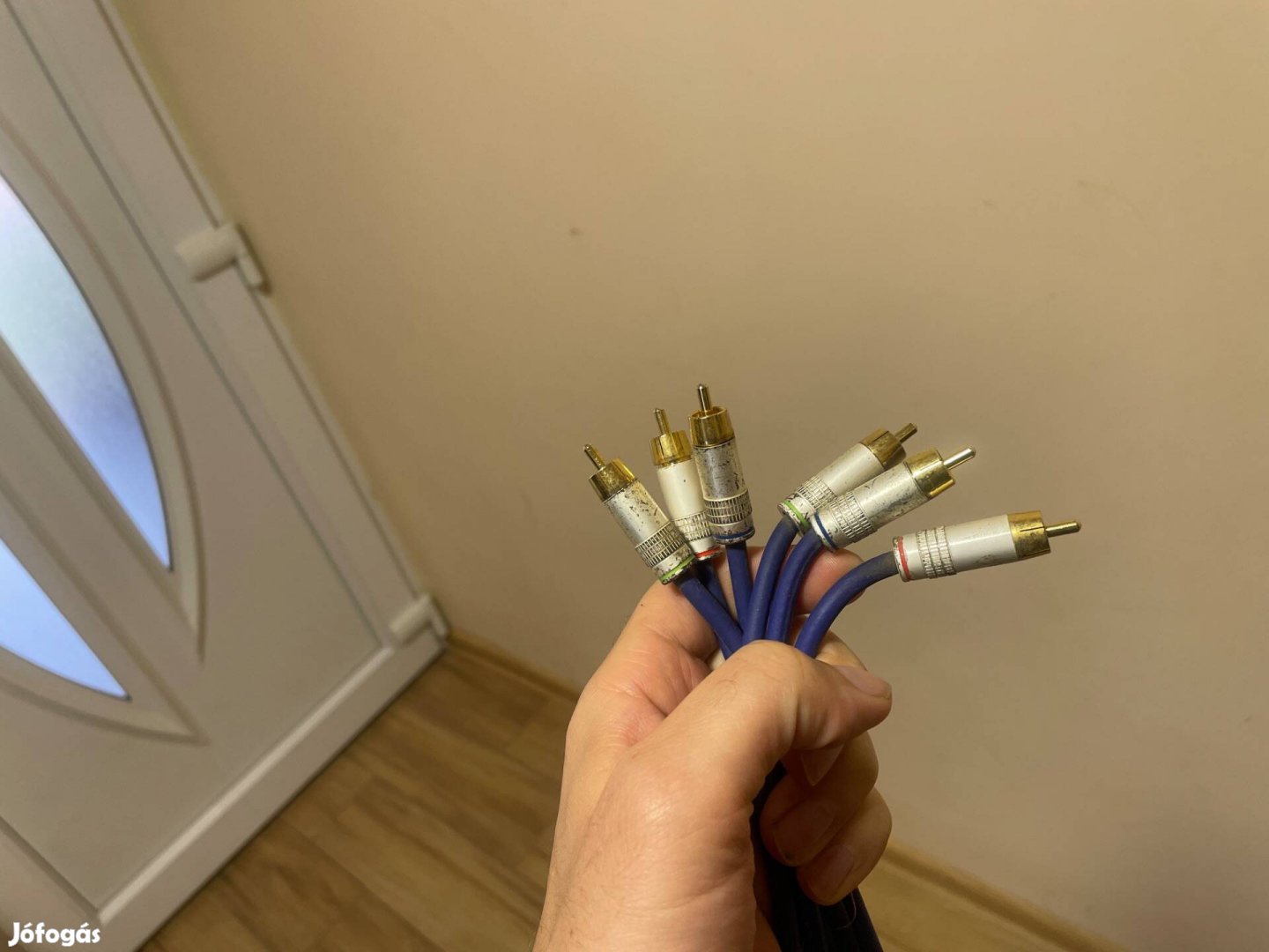 Kb 120 cm hosszú 3 eres aranyozott csatlakozójú RCA kábel. Házi mozihoz, autó hifihez vagy ki minek akarja.