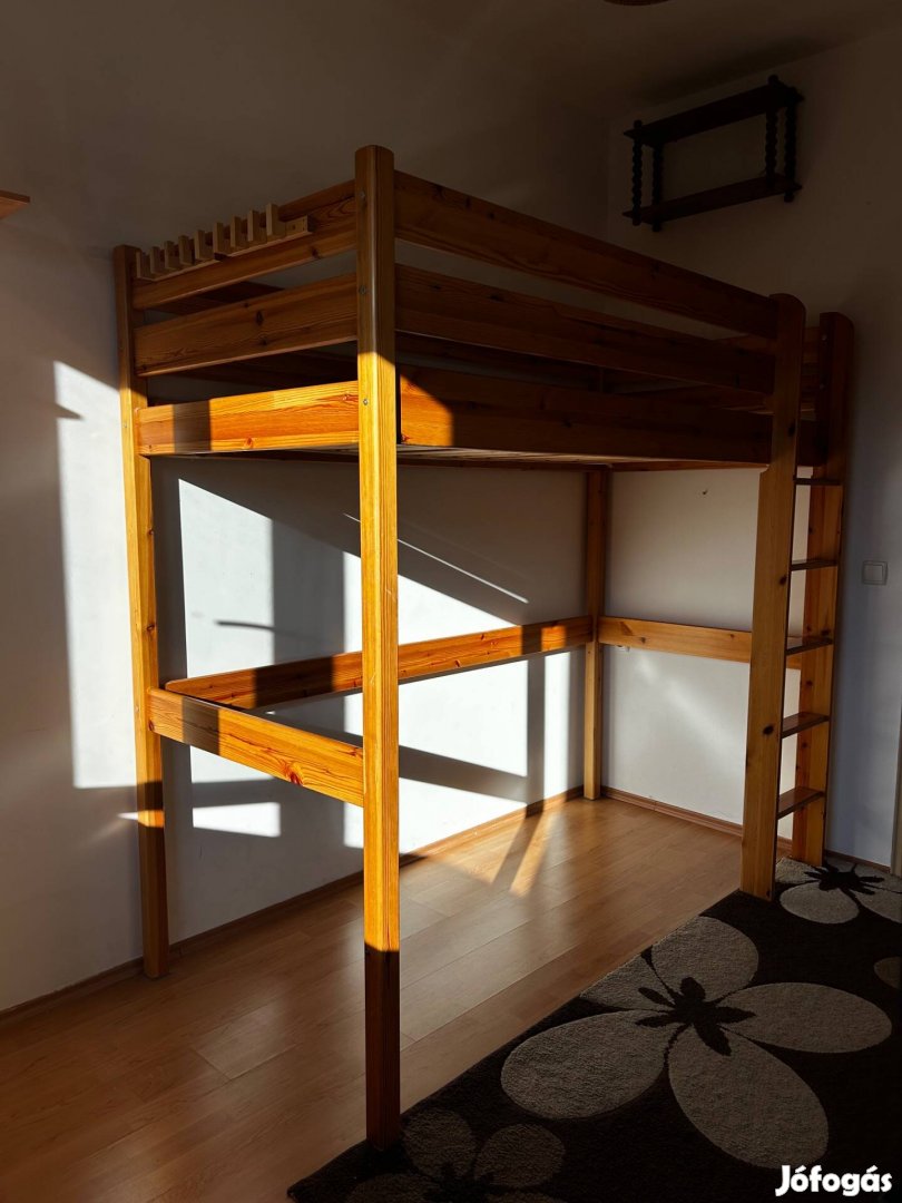 Borovi fenyőfából készülő galériás ágyváz natúr lakkozott színben. Jelenleg lapraszerelt állapotban van, minden tartozéka hiánytalanul meg van!