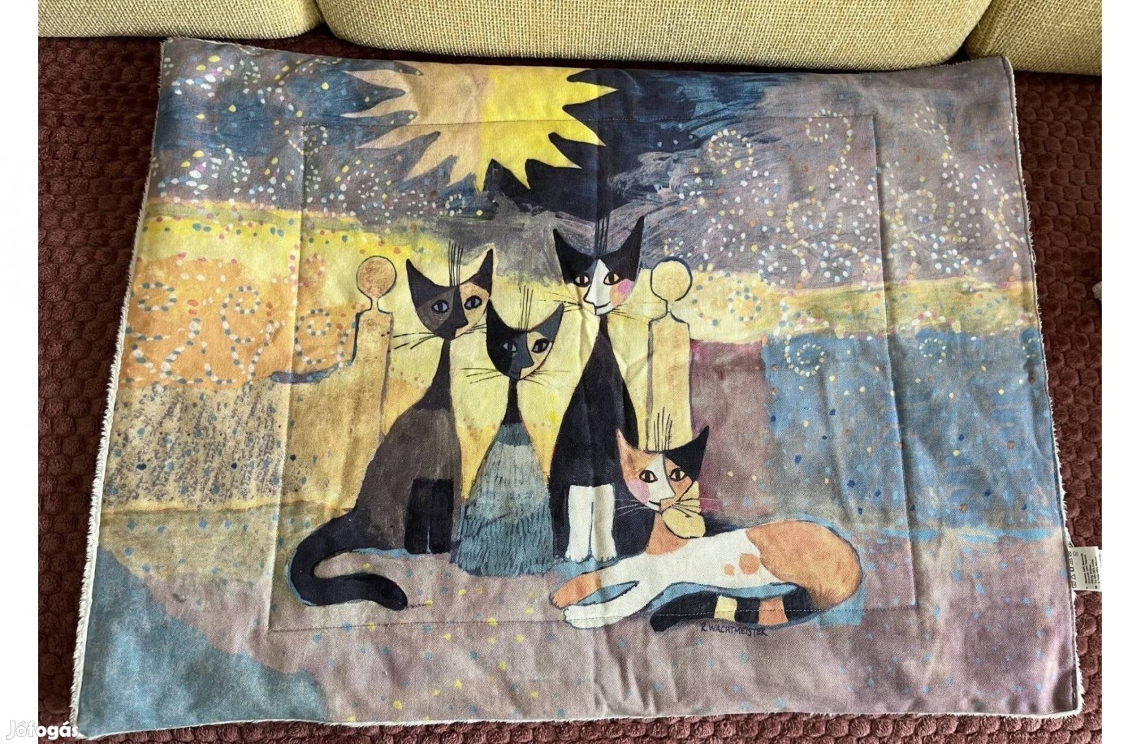 Rosina Wachtmeister motívummal díszített macska fekhely , ágyikó . Egyik oldala meleg prémes a másik vászon anyag , amely a melegebb időben ajánlott a kis kedvencének .