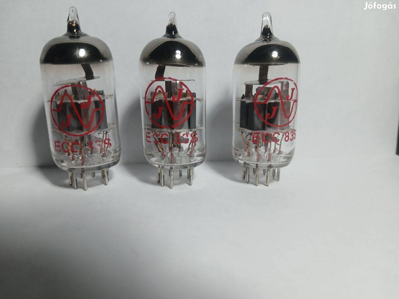 Eladó három darab JJ Electronic ECC83 vákuumcső (Szlovákia). Használt csövek, otthoni erősítőben kíméletesen használva. Teljesen működőképesek, zaj- és mikrofonmentesek.