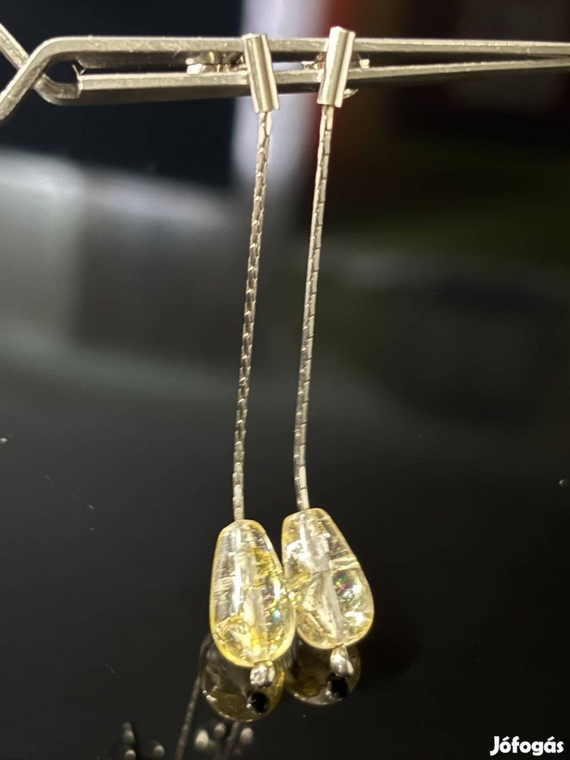Eladó egy különleges, rendkívül mutatós, mégis letisztult formájú, ragyogó csillogású, lógós ezüst fülbevaló pár, valódi-természetes Citrin kővel ékesítve.(Gyönyörűen kirajzolódik a kristályos több színű szerkezet)
