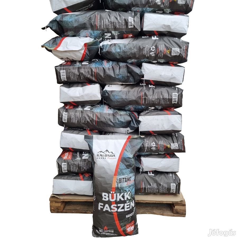 Kalonda prémium bükkfaszén 10 kg-os zsákos kiszerelésű, Bitang extra magas kalóriájú faszén a Hargitáról raklaposan, mely 27 zsákot tartalmaz.