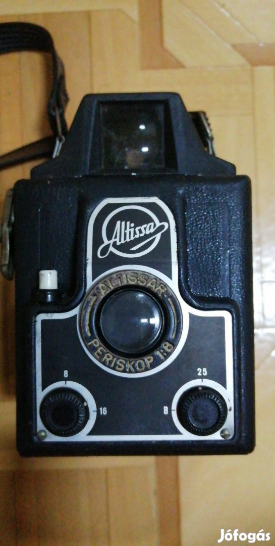 Eladó a képeken látható jó állapotú régi Német gyártmányú Altissa box fényképezőgép.Periskop 1:8.Postán maradó csomagként vagy MPL csomagautómatába 1490ft-ért, tudom küldeni.