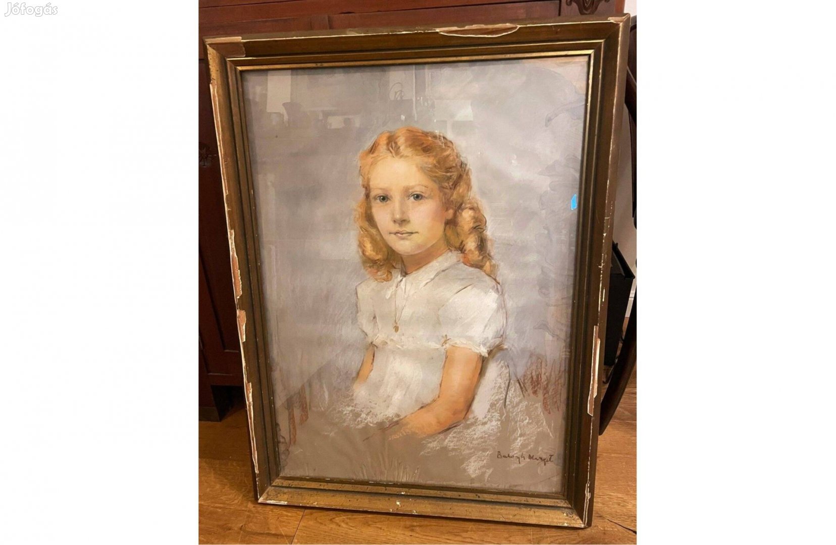 Balogh Margit Fiatal lány portré, régi festmény. Papír, pasztell. Gyönyörű! Élénk szép színekkel, kvalitásos kép. A keret sérült, cserére érett, de ezt az új tulajdonos ízlésére bízom. Jelzés jobbra lent. A múlt század harmincas-negyvenes éveiben készülhetett.