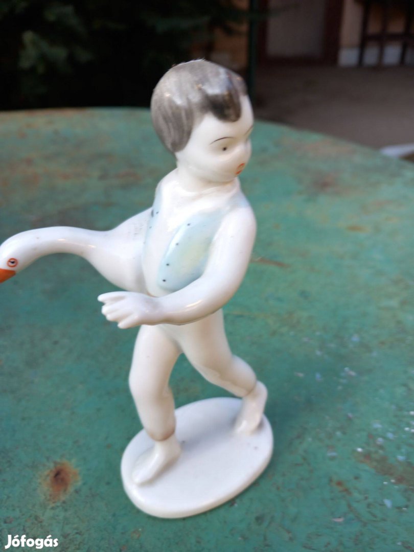 Régi Hollóházi nipp figura libás fiú porcelán