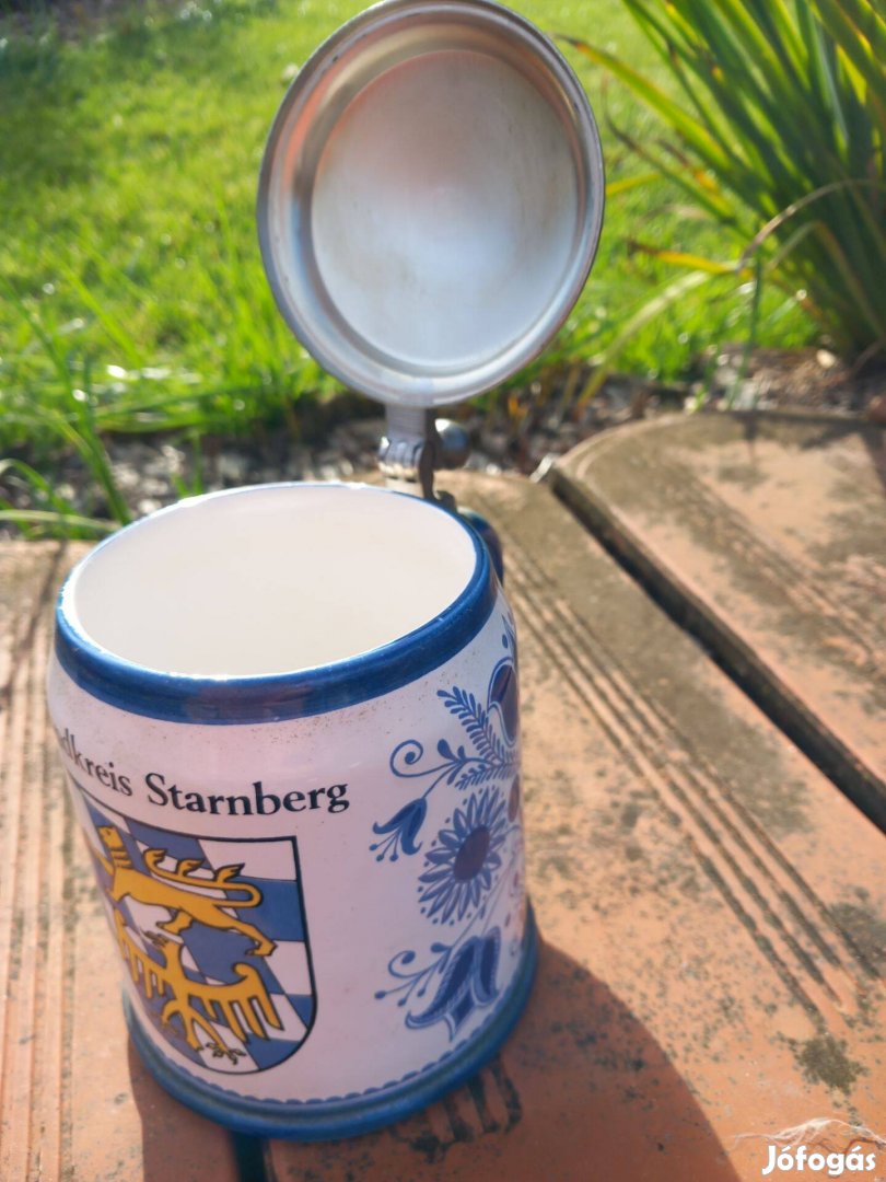 Régi NDK jelzett kerámia sörös korsó fedeles hibátlan