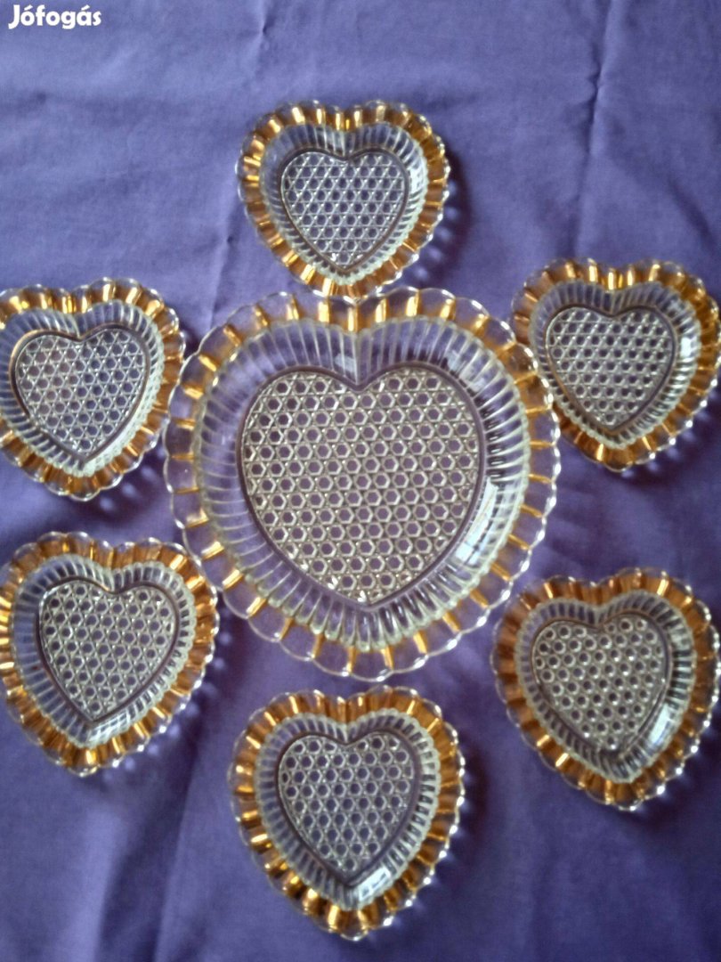 Régi Szívalakú Üvegkészlet Gyűjtőknek !