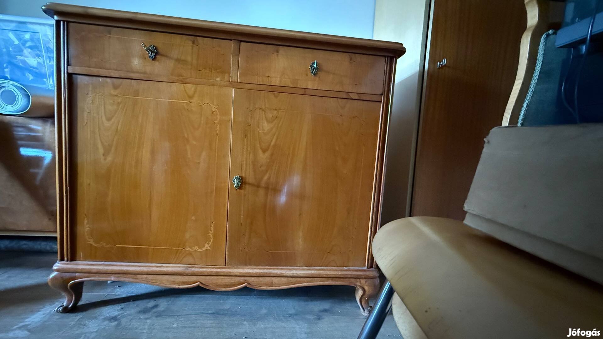Régi típusú, szép állapotban lévő fa komód. A tetején van néhány kisebb karcolás, elszíneződés, amit fotóztam.