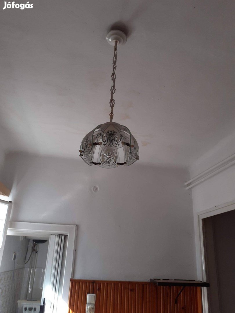 Régi festett üveglapokból mennyezeti lámpa hibátlan
