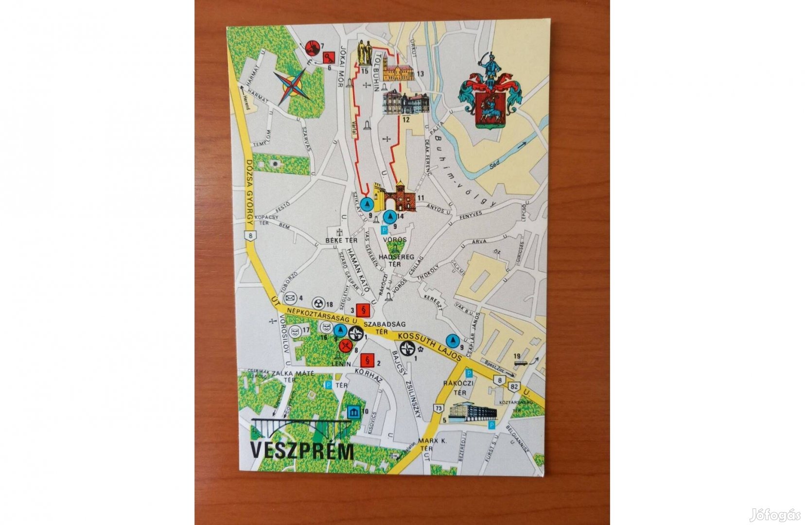 Régi képeslap, térképes Veszprém (1970)