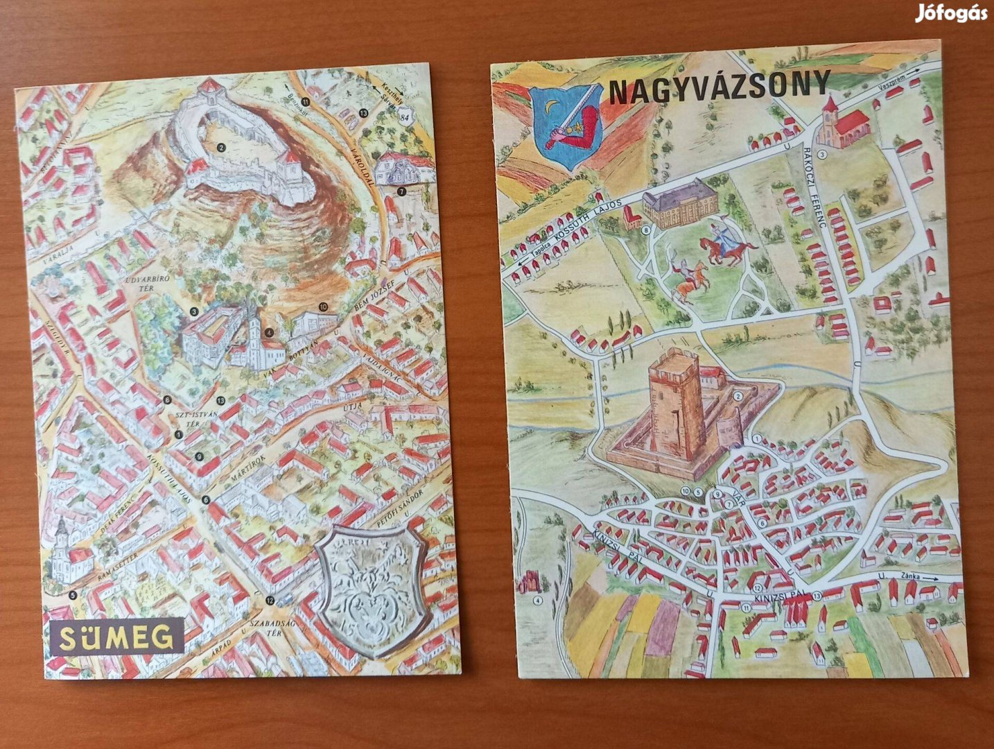 Régi képeslap, térképes - Sümeg és Nagyvázsony (1973)