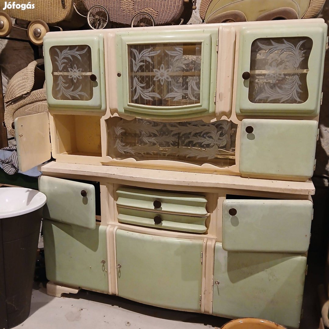 A képeken látható kredenc még fából készült180x180x60cm egy csík üveg törött