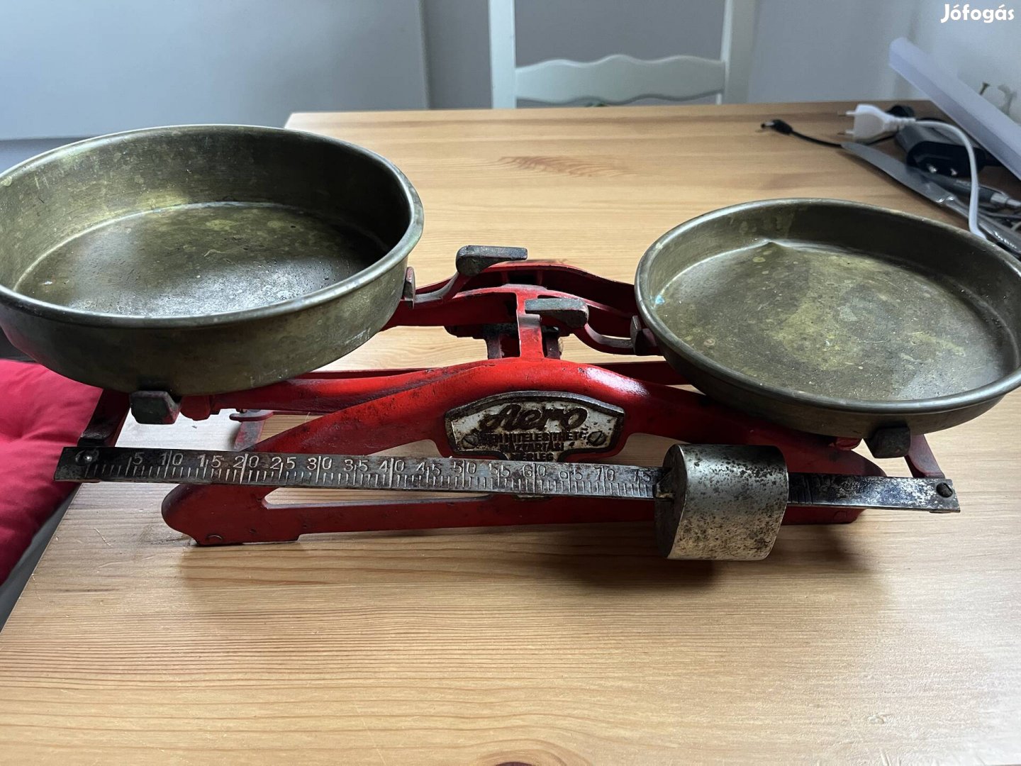 Régi öntöttvas mérleg réz tányérokkal működőképes állapotban eladó.