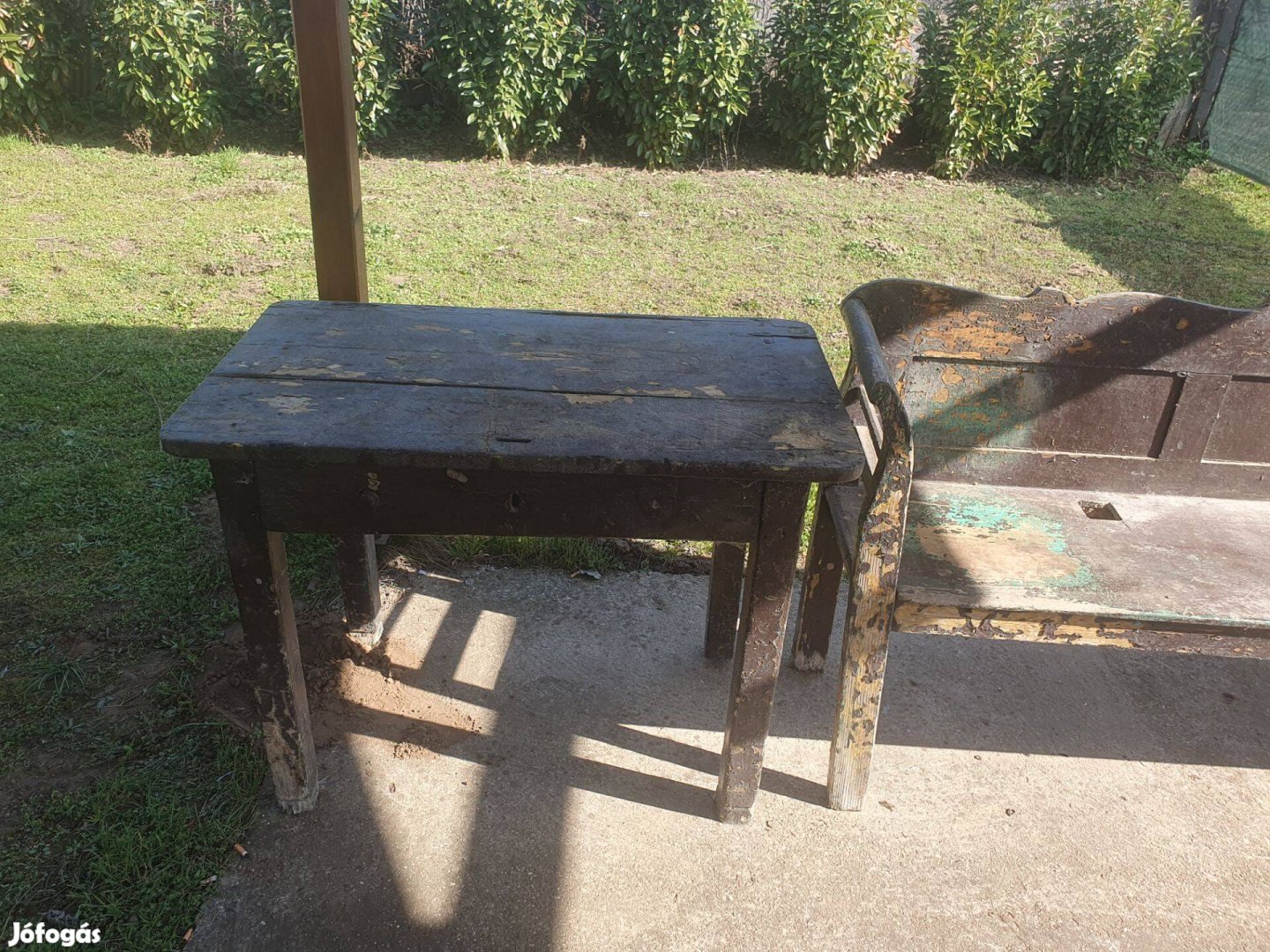 Régi udvari pad asztallal felujítandó állapotban