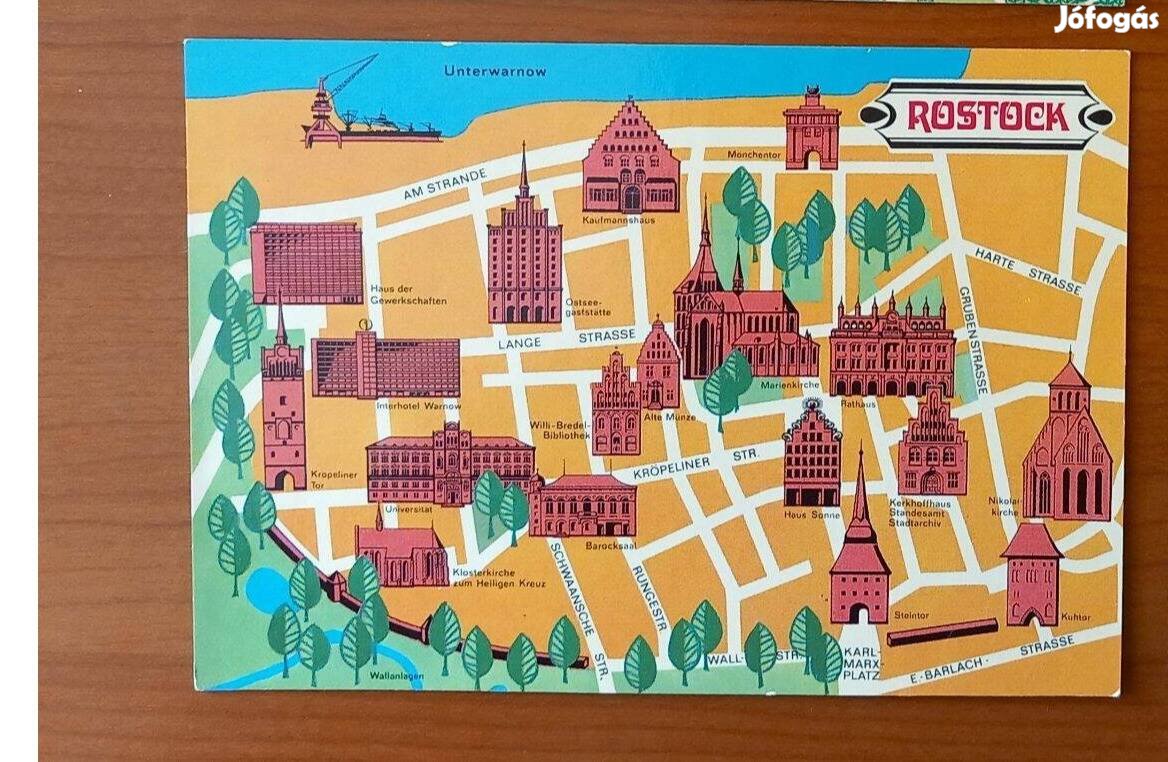 Régi német képeslap ('70-es évek), térképes - Rostock