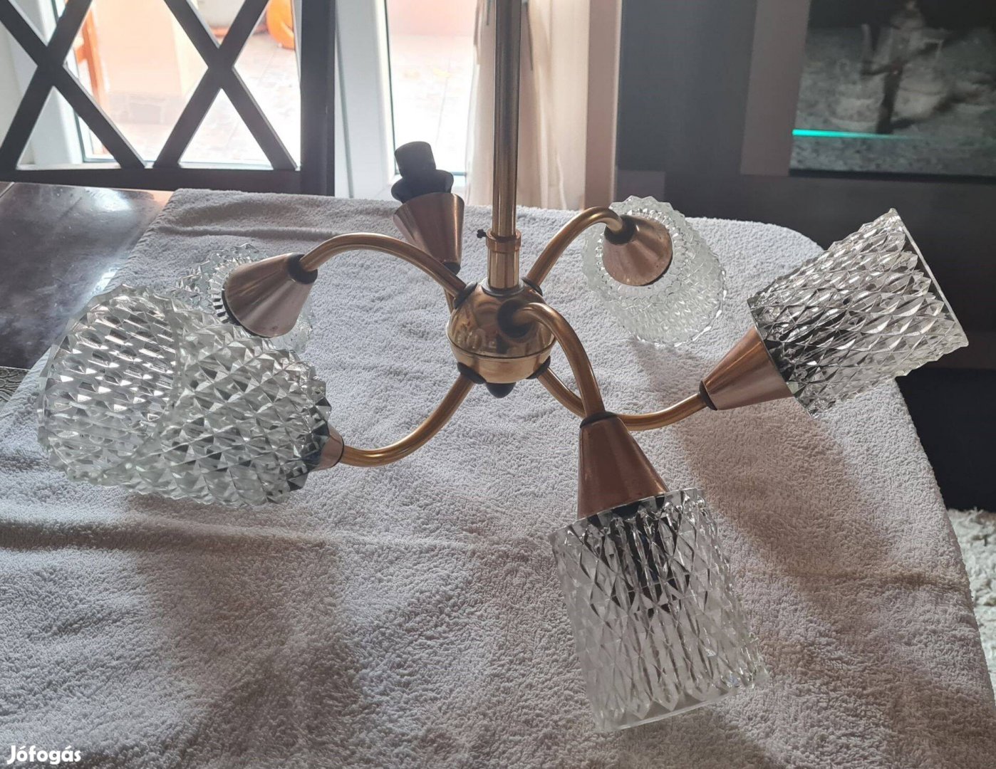 Eladó egy 6 ágú retro csillár a 60-70-es évekből. E14 foglalatú (mignon), a búra lyukátmérője 33mm, hossza 100mm.