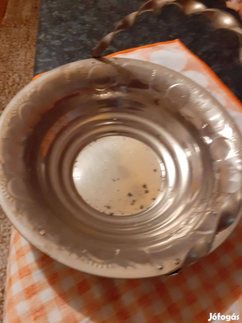 Régi rozsdamentes füles mély kínáló tál átm 26cm