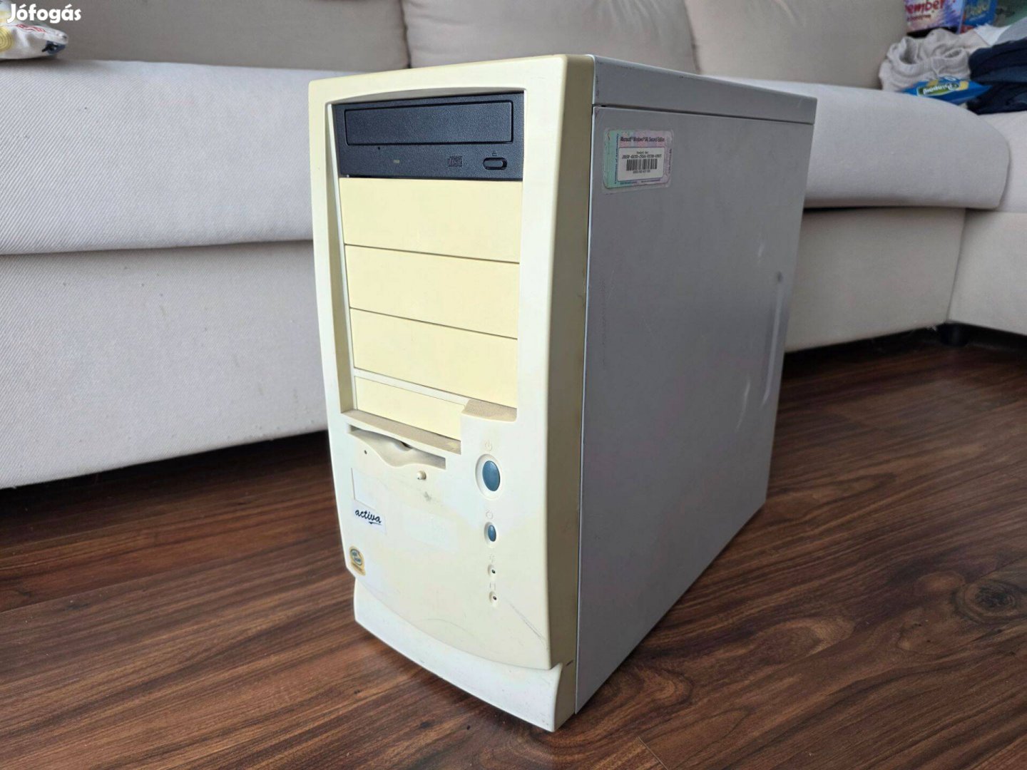 Intel alaplappal, 128 MB RAM van benne, a proci 800 Mhz Pentium 3, 40GB HDD van benne.