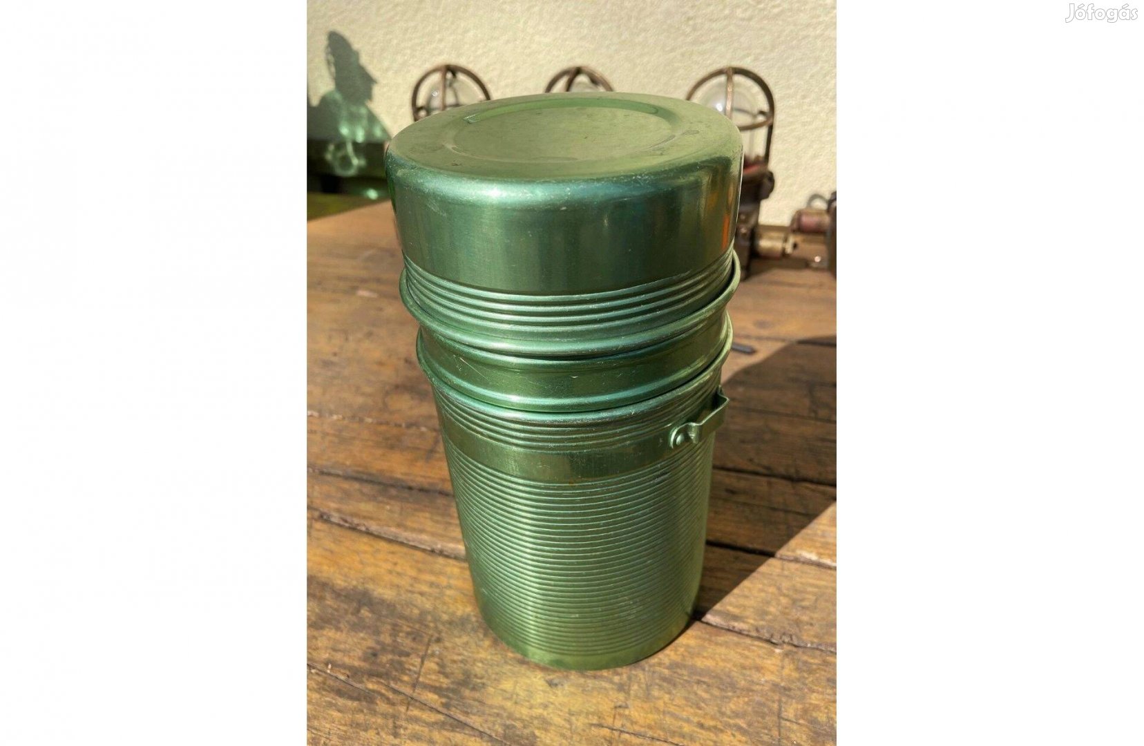 Vintage fagyis termosz (más néven hőpalack), amelyet jellemzően az 1950-es és 1970-es évek között használtak. Ezeket a tartályokat kifejezetten arra tervezték, hogy a fagylaltot vagy más élelmiszereket hosszabb ideig hidegen (vagy melegen) tartsák a piknikek vagy utazások során.