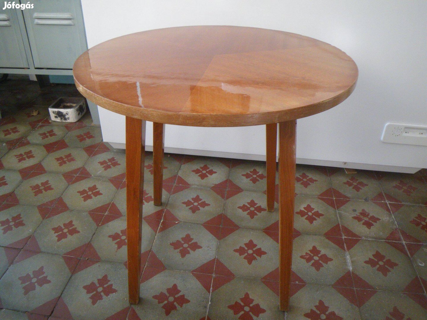 Eladó a képen látható jó állapotú erős lábak, világosbarna szín, masszív lábú Retró hatvan éves dohányzó asztal.