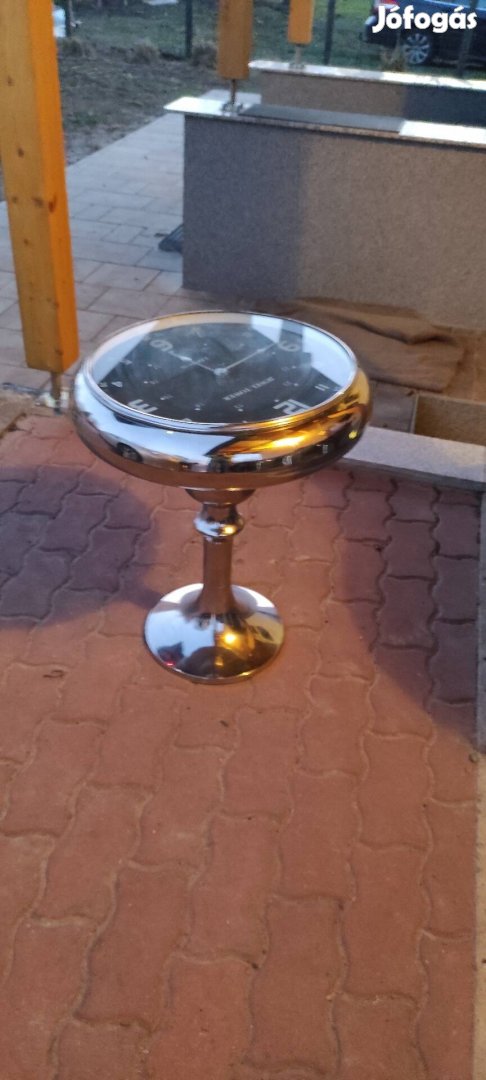 Eladó a képen látható kb 80 as évekbeli óraasztal anyaga fém. magassága 60cm átmérő 50cm tökéletesen működik. Csak személyes átvétel lehetséges