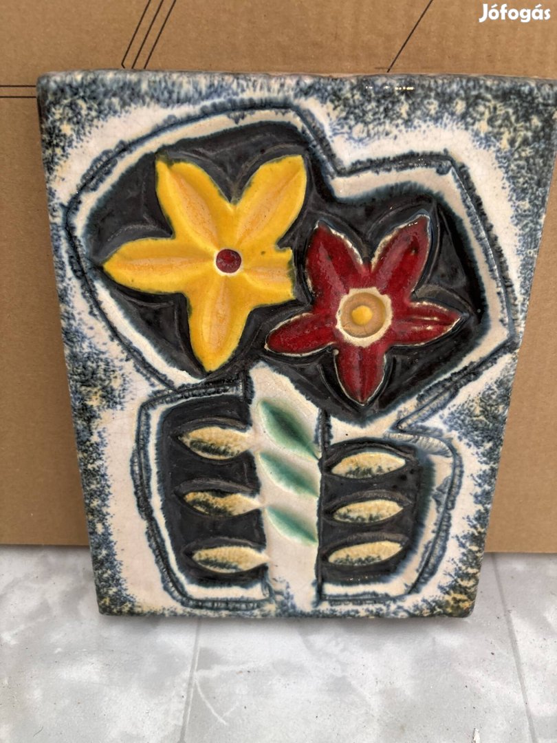 Retró Ruscha stílusú kerámia falikép - Mid-Century Modern relief