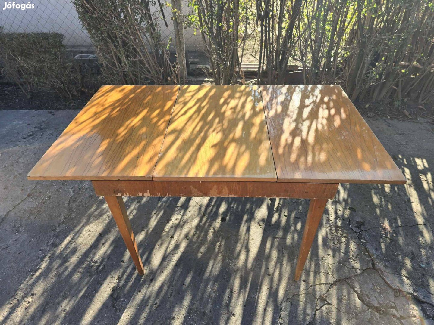 80x90 cm-es étkező asztal, mely 45 cm-es toldással bővíthető (80x135-re). Az asztal magassága 75 cm.