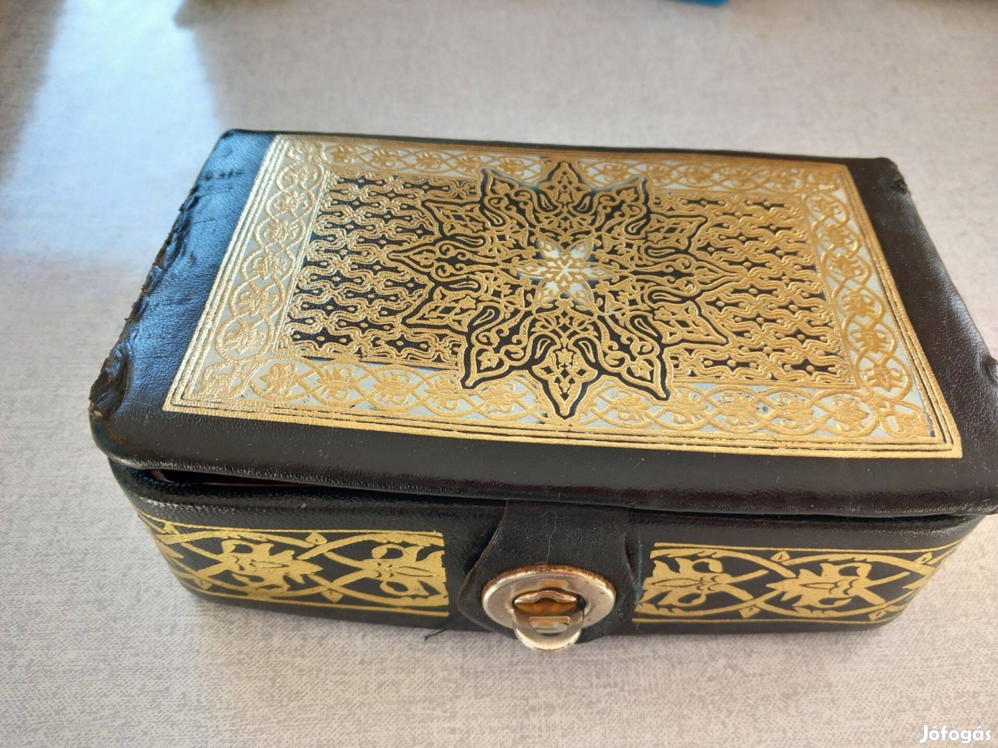 Retro bőr ékszertartó ládika bélelt kb 12x22cm