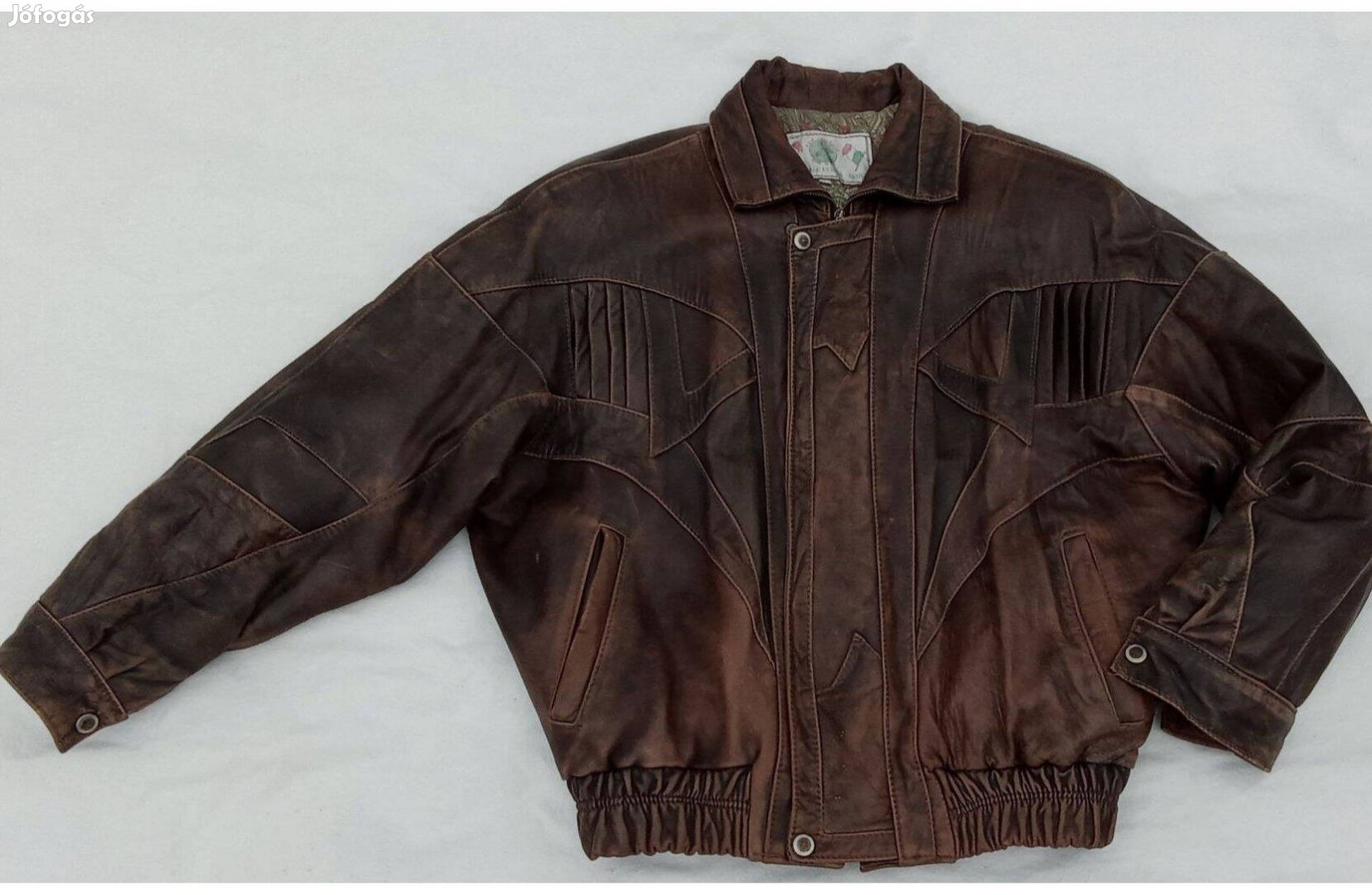 Lezser fazonú, olasz bőrdzseki, steppelt béléssel ( 2 rétegű a bélés ), sötétbarna színű néhol világosabb barna, koptatott hatású.