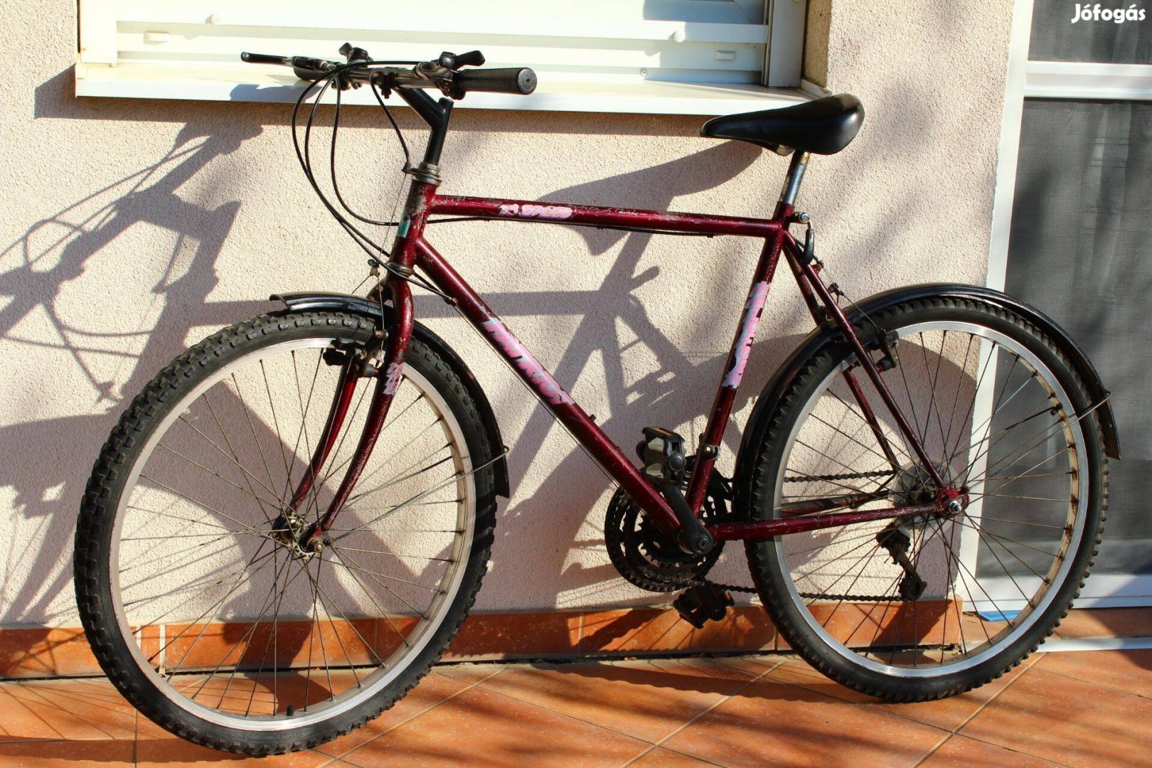 Eladó Kaloform Patriot retro hobbi mtb kerékpár, 1992-es évjárat. Jó állapotú, acélvázas, 3×6 sebesség, cantilever fékek, fém sárvédővel.