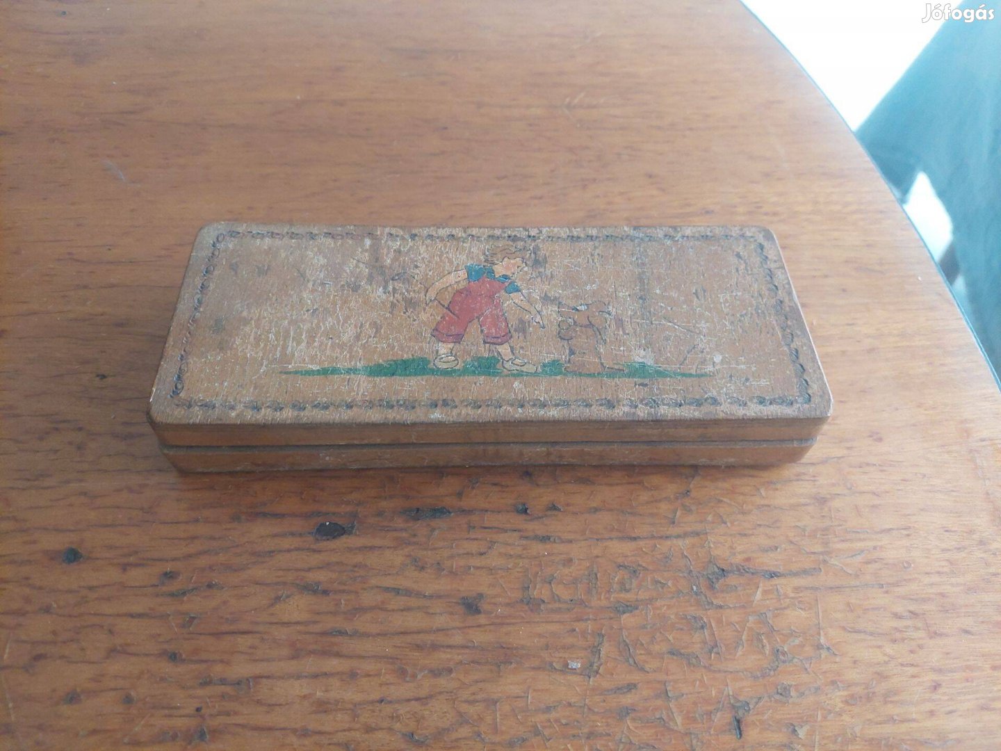 Eladó egy ritka régi fa iskolai tolltartó,fellelt állapotban,többit a fotókról,szállitás bárhogy kivéve utánvét.