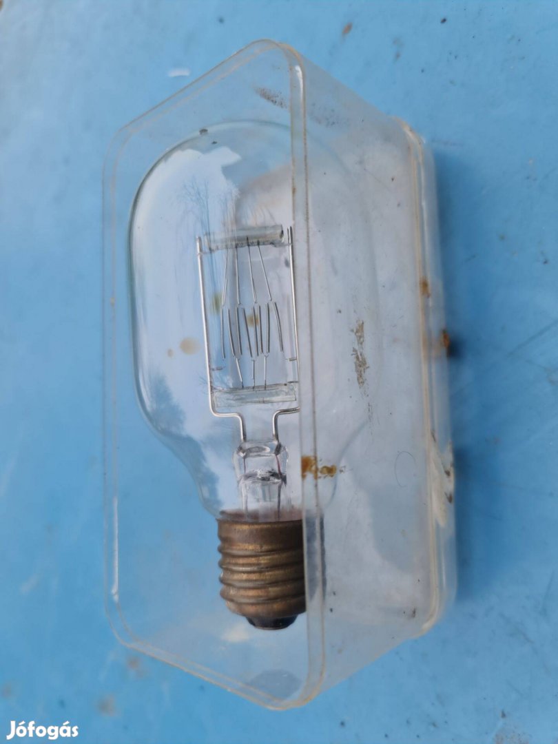 Régi, gyűjtői darabnak számító villanykörte, amely valószínűleg Tungsram márkájú, szocreál stílusú, vörös csillagos glimm izzókhoz hasonló.
