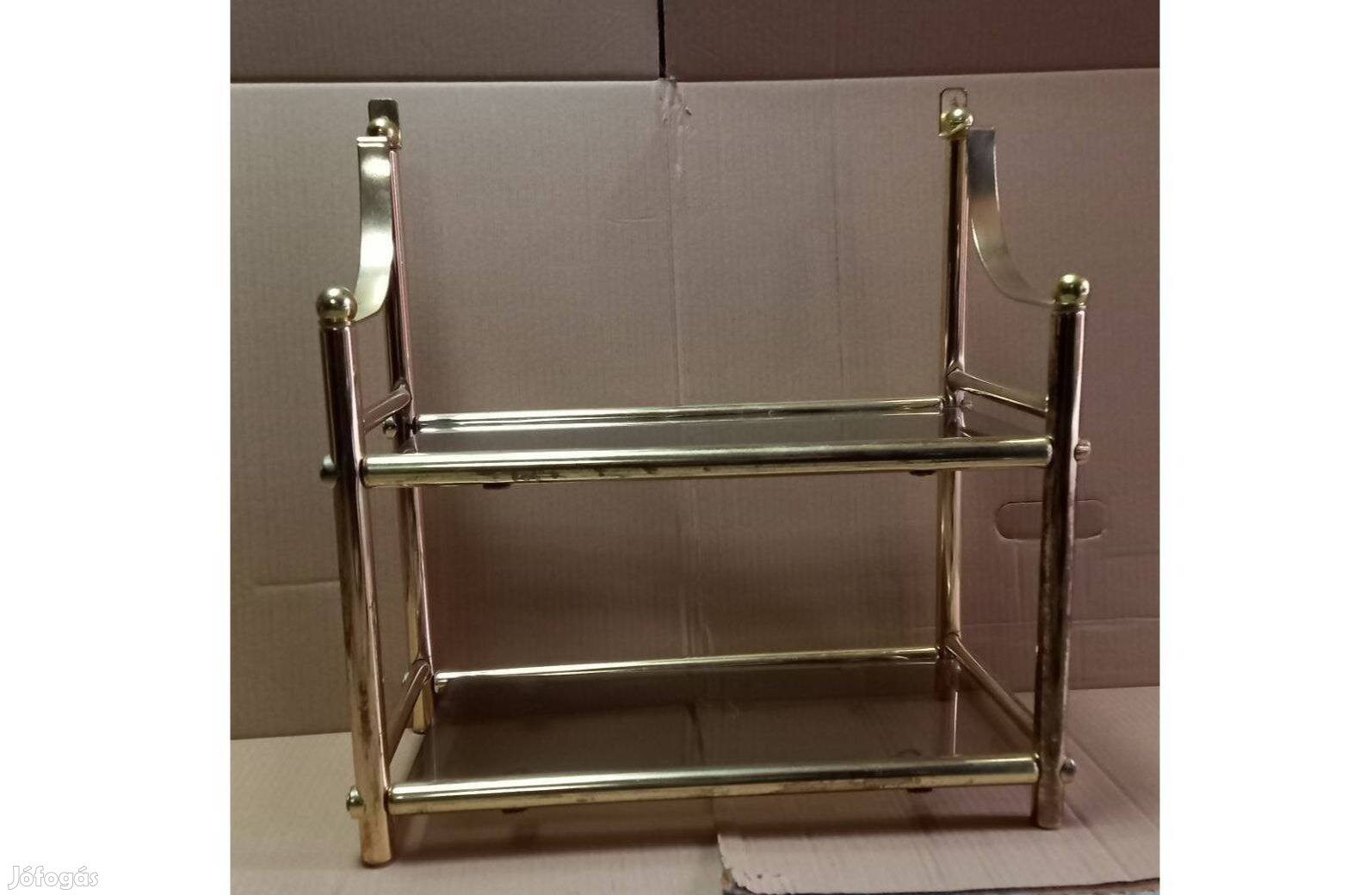 A képen látható tárgy egy retro stílusú sárgaréz polc, ) üveglappal rendelkezik.