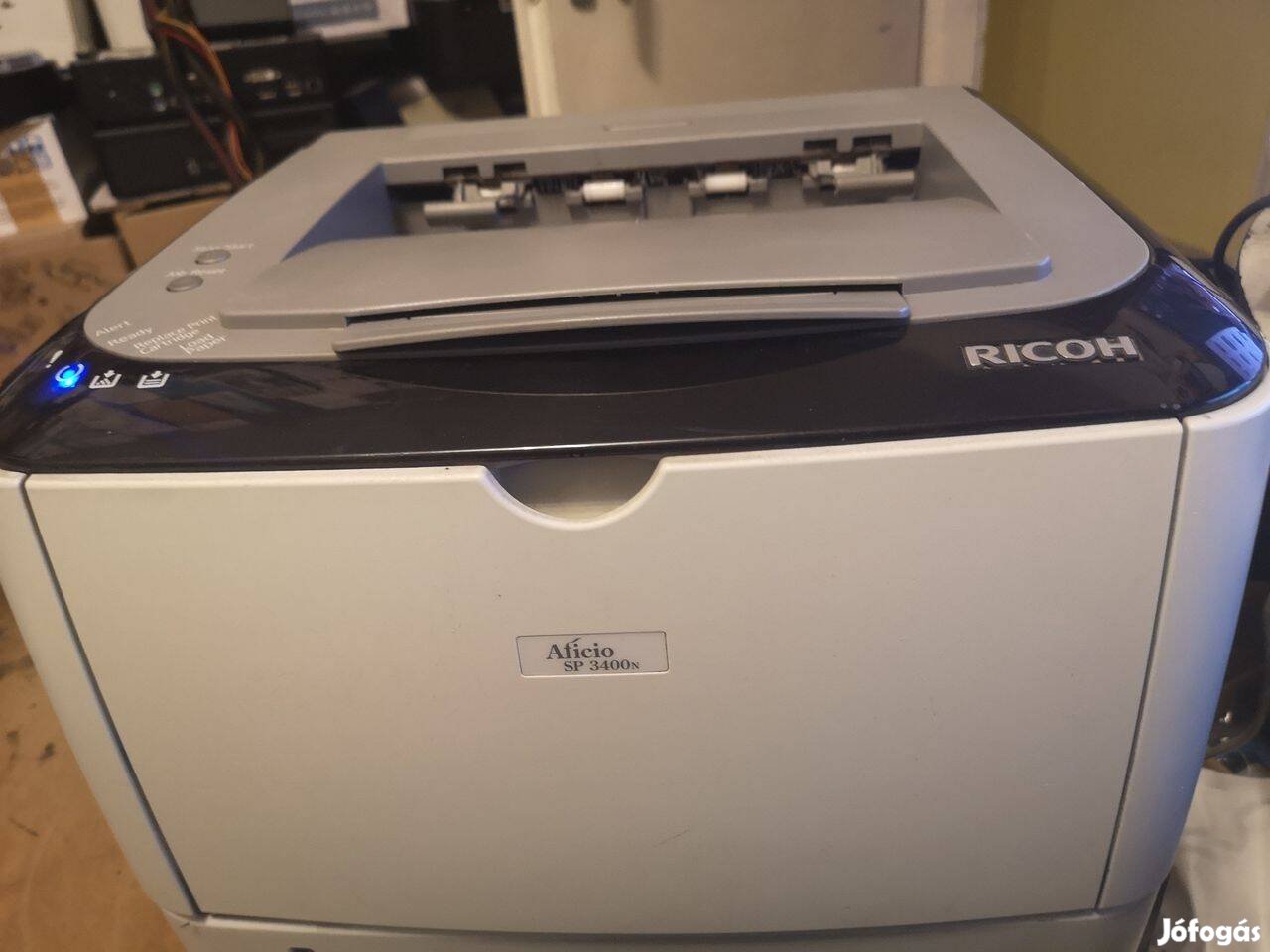 Eladó Ricoh SP 3400n hálózatos fekete - fehér lézer nyomtató. Hálózatos és USB portok.