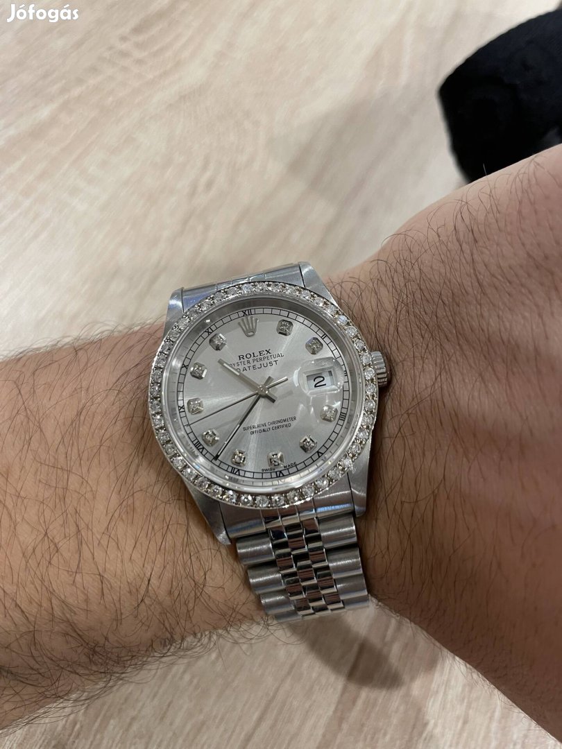 Certifikációval, szép állapotban, fehérarany lünetta, gyémántokkal