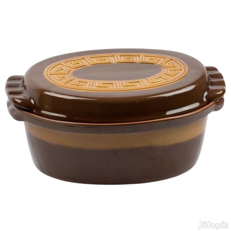Római kerámia tál kívül belül mázas 4,5 literes , kacsasütő tál, méretei: 12 cm magas, fedővel 15,5 cm, 24,5 cm széles és 34,5 cm hosszú.