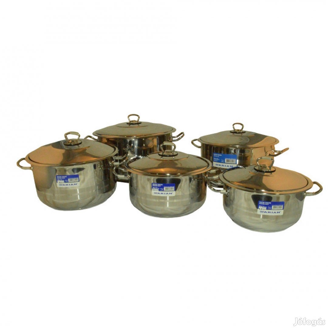 Arian rozsdamentes edénykészlet 10 részes , fém fedővel, 6 - 8 - 10,5 - 13 - 16,5 literes.