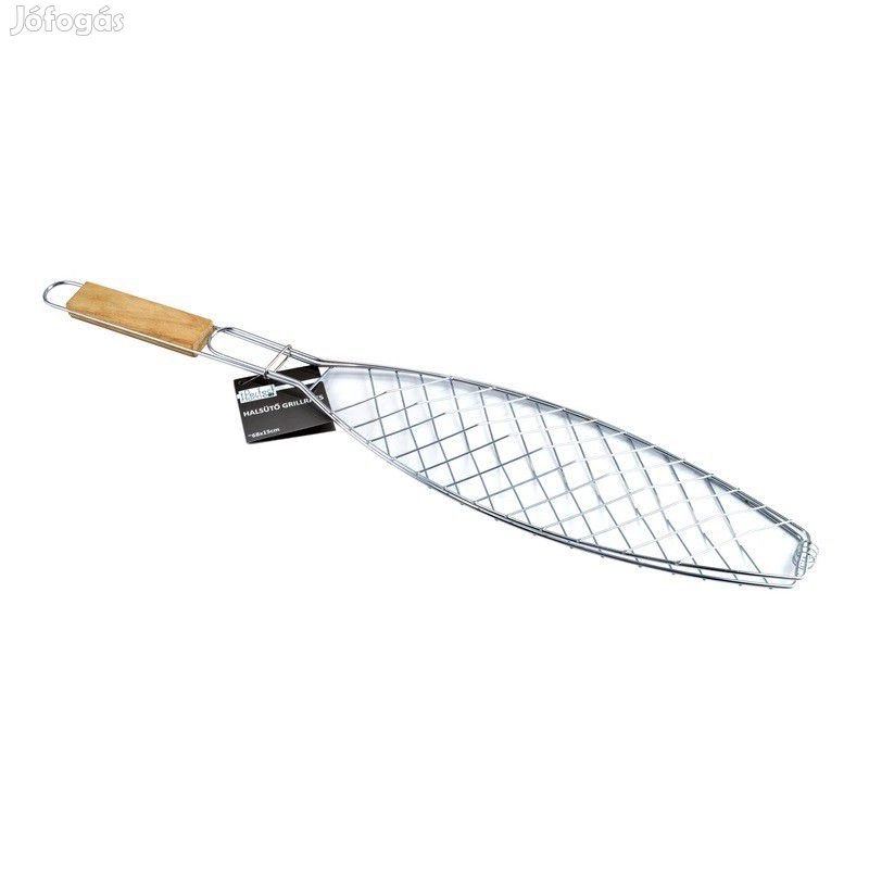 Rozsdamentes halsütő grillrács fa nyéllel 56cm