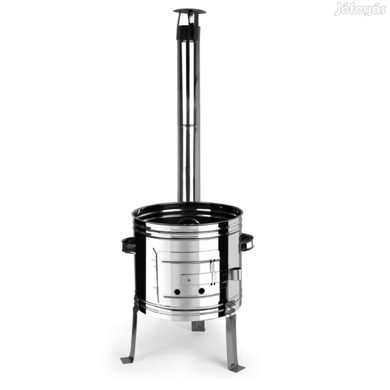 36 cm belső átmérőjű, 55 cm magas, láb hossza 23 cm, belső magassága : 31 cm (14 literes bográcshoz megfelelő méretű.)
