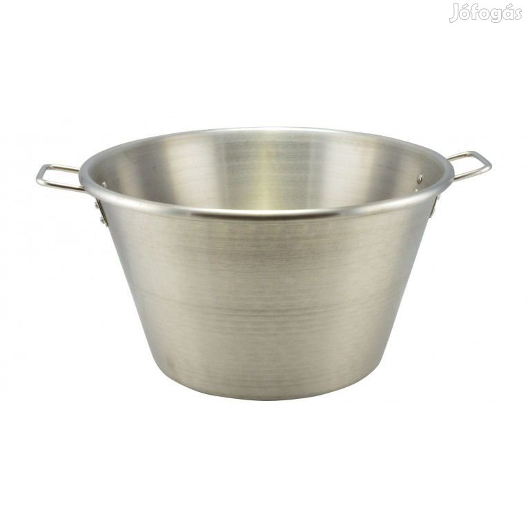 Minőségi 40 literes rozsdamentes üst, 52 cm átmérőjű felül (füllel: 63 cm), 33 cm átmérőjű alul; 30,5 cm magas, kb 47 cm-es üstházra helyezhető.