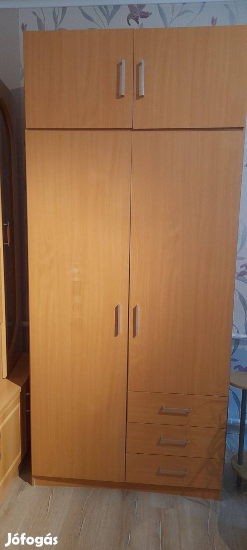 Jysk ruhásszekrény, a felsőrész levehető. Az akasztós szekrény ajtón, kis hibával. Költözés miatt eladó!
