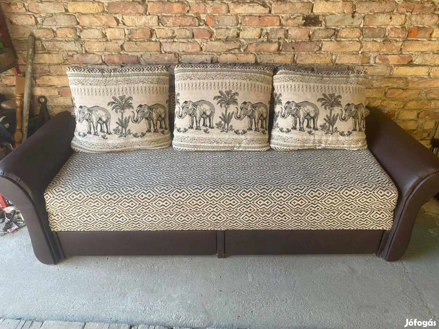 Költözés miatt eladó egy ágyazható rugós ülőfelülettel rendelkező Safari kanapé 3 db párnával.