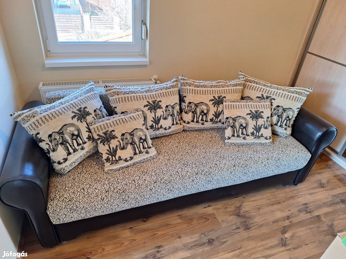 4 db nagy és 2 db kisebb elefántos párnával együtt.