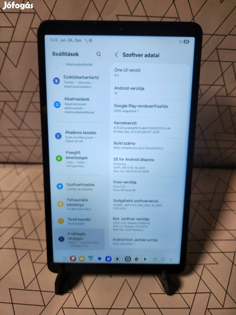 Eladóvá vált kíváló állapotú, Samsung Galaxy Tab A9 (SM-X110) tabletem elegáns sötétkék színben. A készülék végig odafigyeléssel volt használva, esztétikailag és műszakilag is kifogástalan - ahogy a képeken is látszik, a rendszer szerint is ,,Remek" állapotban van!