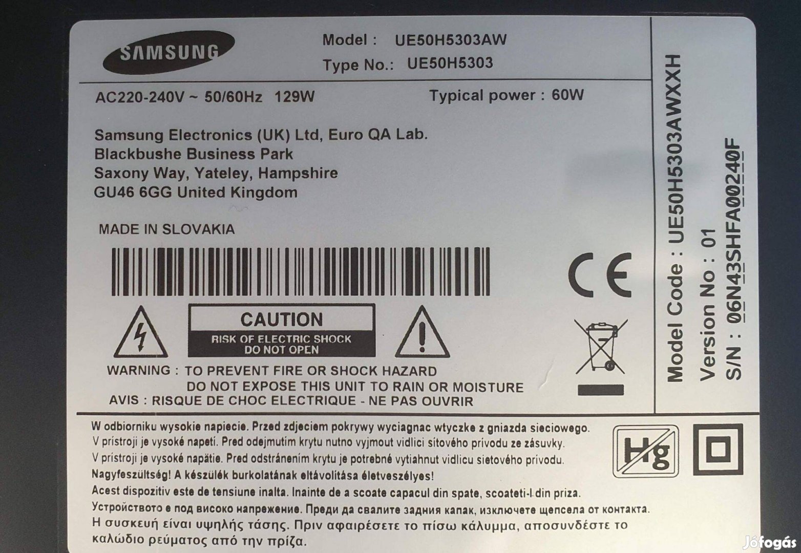 Samsung UE50H5303 LED LCD tv hibás törött alkatrésznek ,Tcon elkelt