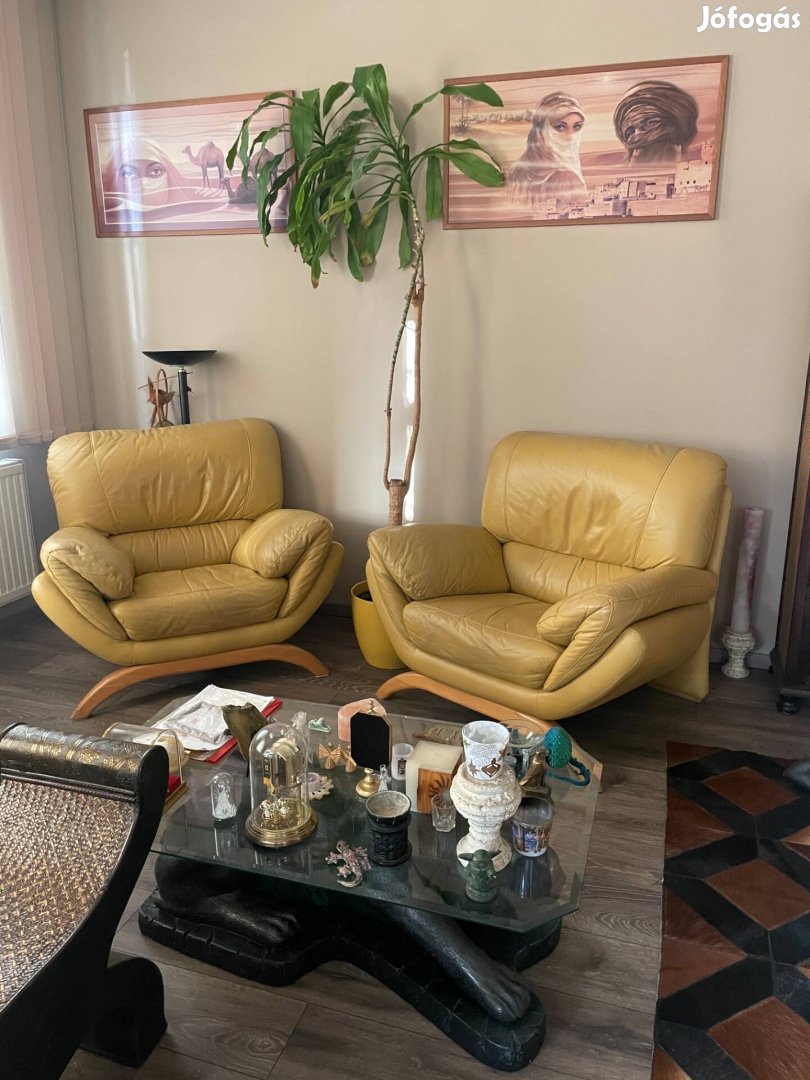 Eladó az Enigmák c. Műsorok híres fotelgarnitúrája. Alapvetően a kanapé eladó, de ha valakinek kell a 2 fotel, viheti azt is. Valódi bőr, 20-30 éve szolgál, nem kér enni, jól viselkedik, azonban a költözködés során az egyik fotel harci sebet szenvedett sajnos a fejtámláján. Takarható, varrható. Képet eredeti állapotáról tudok mutatni, meg a sebről, közelről. Az ár megbeszélés kérdése.