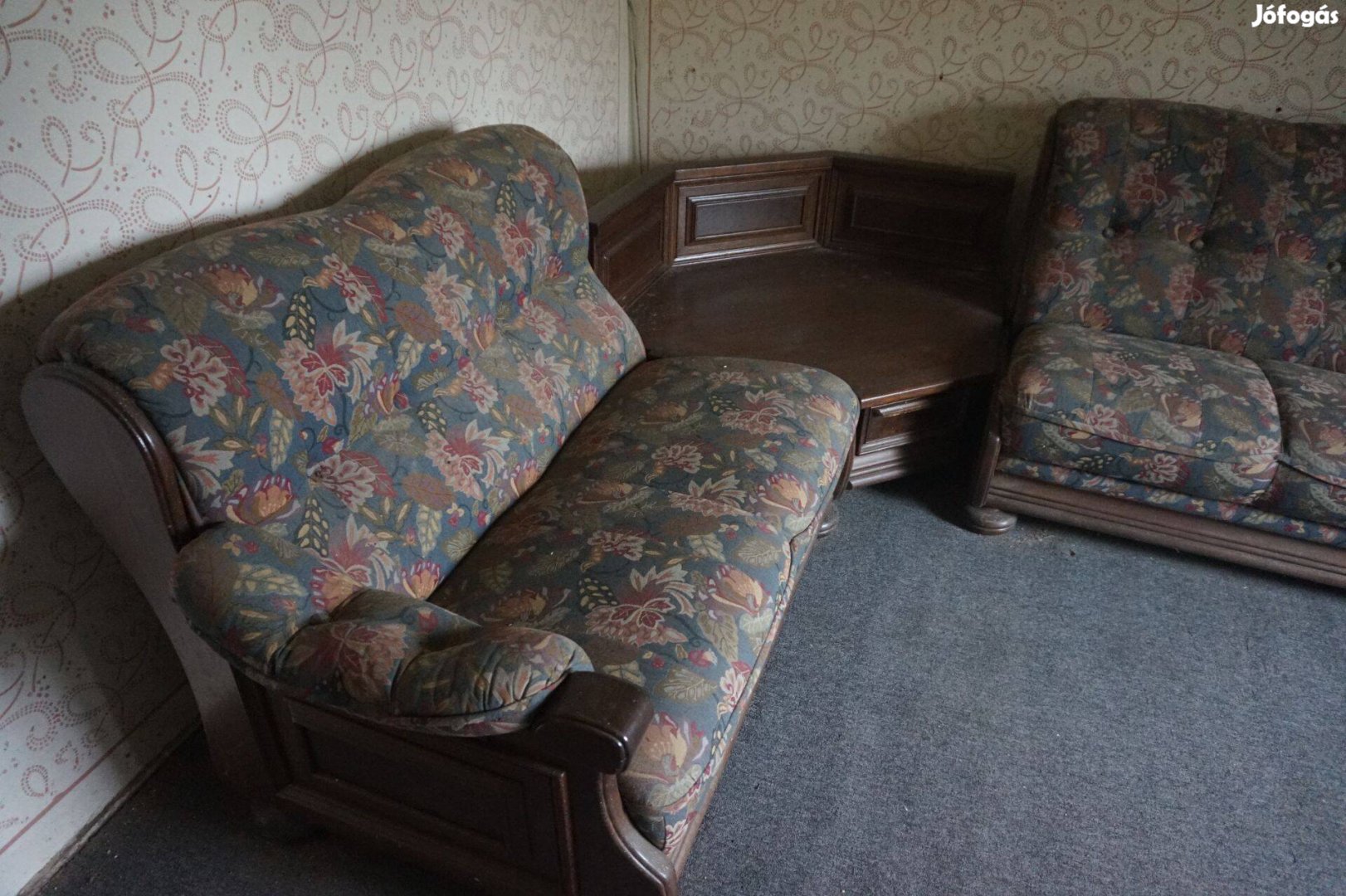 Kárpitozott sarokkanapé, 225*280 cm a sarokelemmel együtt, tömörfa, masszív darab