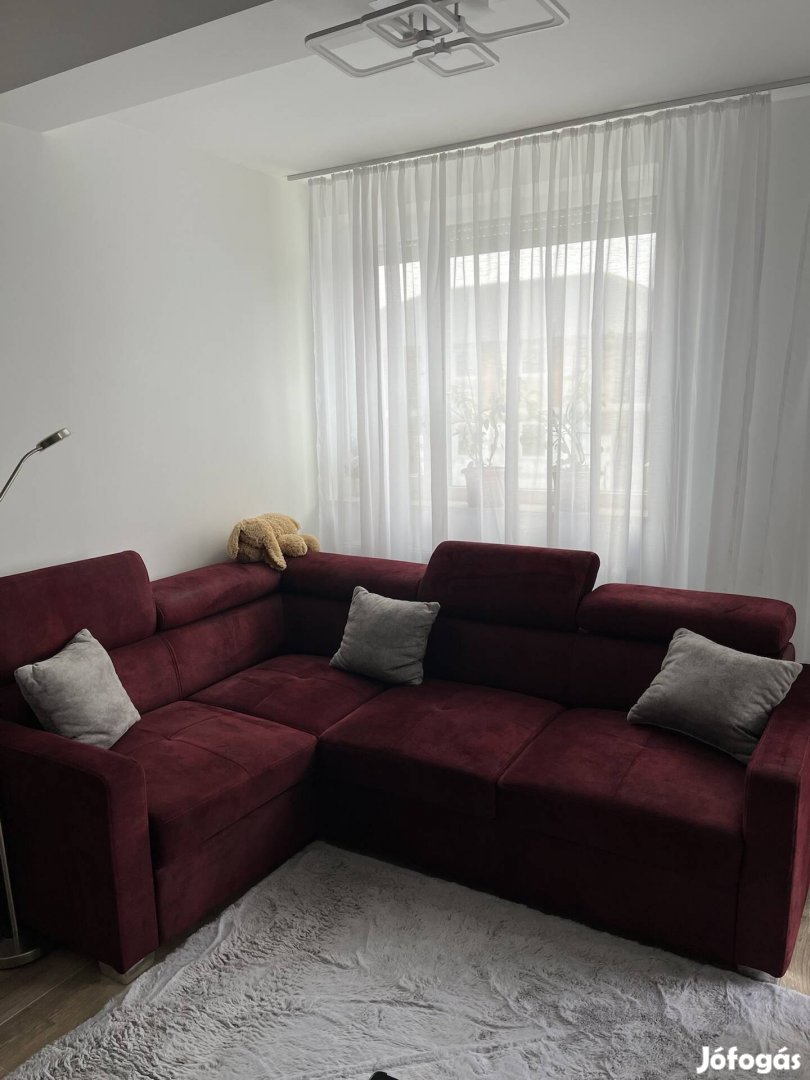 Alig használt, szinte új ággyá nyítható sarokülőgarnitúra eladó. Állítható fejtámla, ágyneműtartóval ellátva. Méret: 180x230 cm Fekvőfelület: 160x200cm
